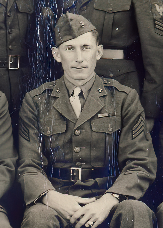 After I had served the four years I was discharged as a sergeant. I went to work for Northrup Aircraft. I had been there for about a year when war was declared and I was recalled to the Marine Corps. I was soon sent to First Sergeants School and upon completion I served in several companies as acting First Sergeant. When the Fourth Marine Division was forming I was sent to Camp Pendleton as a company First