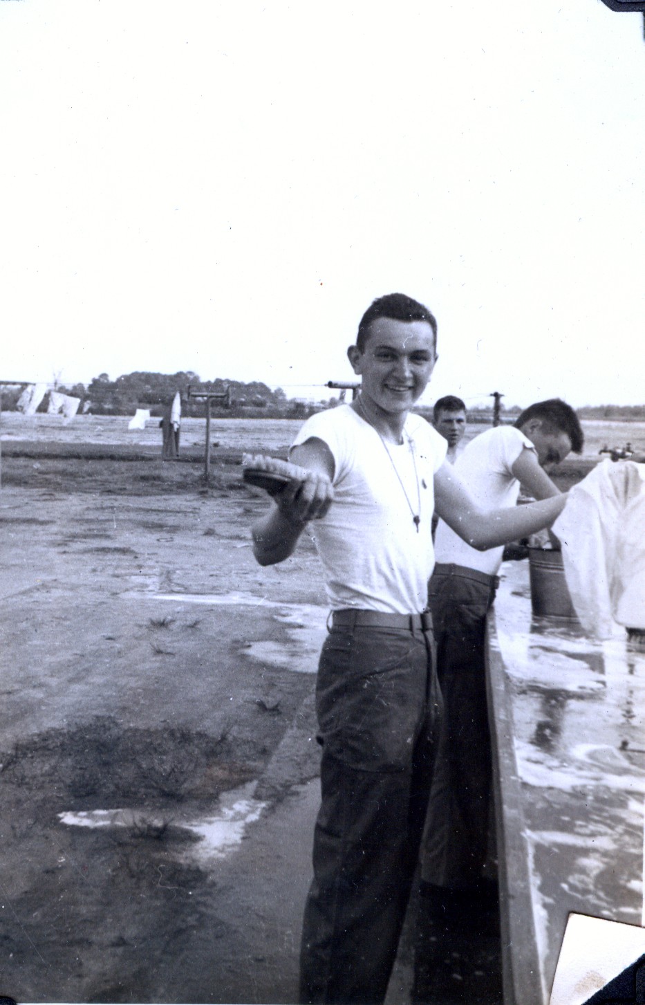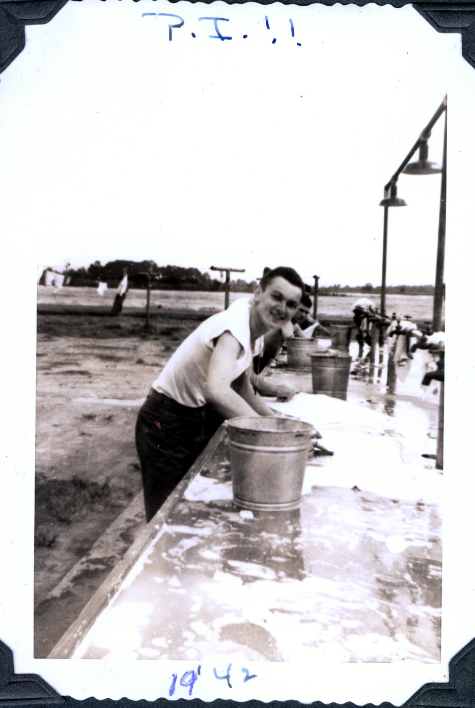 "...we get up at 4:30, make our beds, wash up, shave, brush our teeth and fall out for chow. We march to the mess and eat all we can..."
