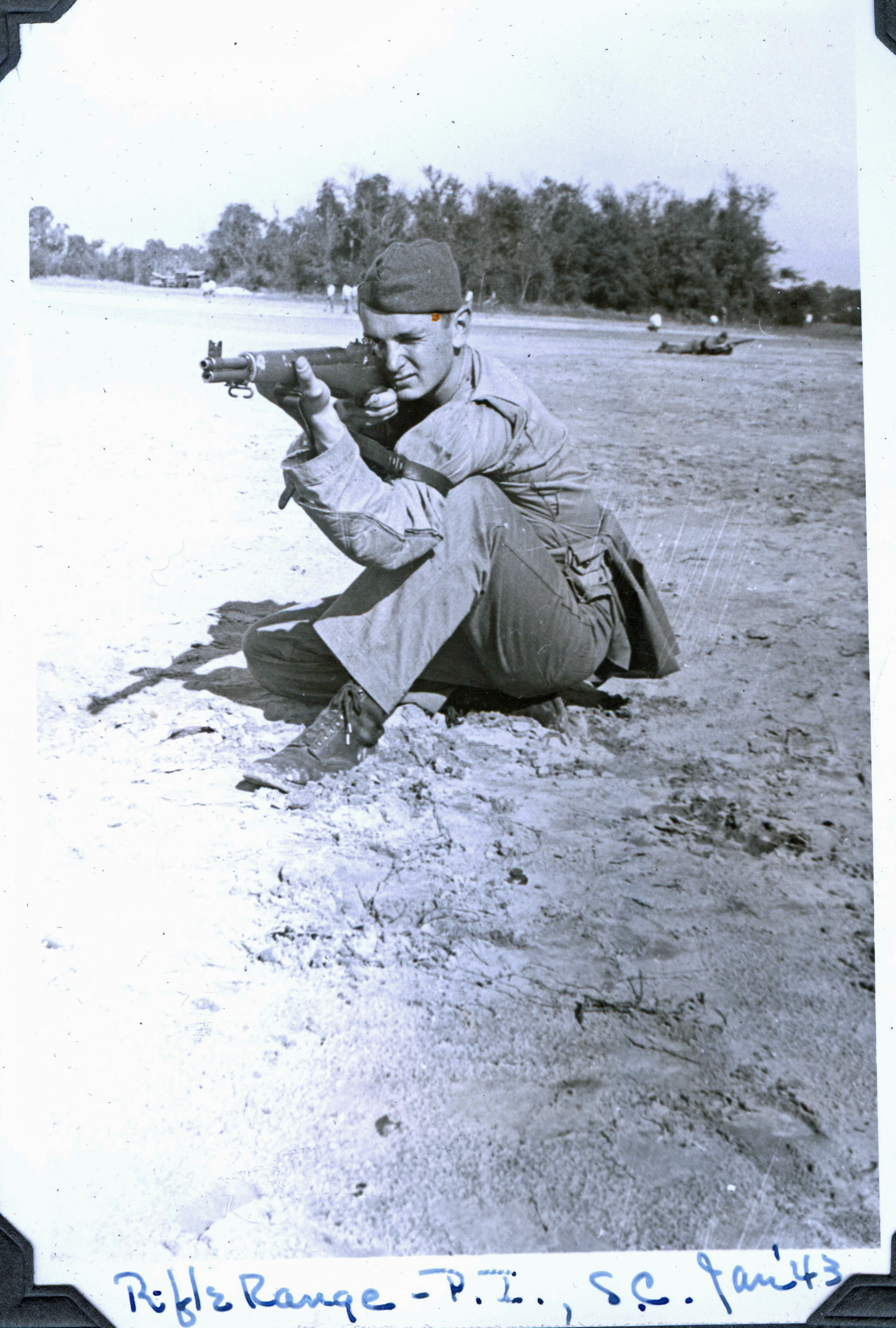 "...Then on the 300 yard line, rapid fire, prone position, I again made 16 out of 16 bullseyes... you have to shoot these 16 shots off in 60 seconds. I'm the only guy in our platoon to get this..."