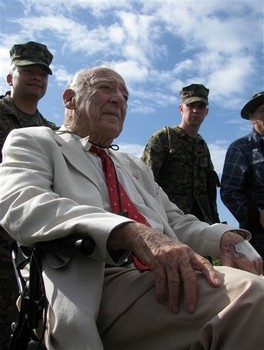 Richard Rothwell was one of many veterans who made it back to Iwo Jima for the 65th anniversary observance. Many active-duty Marines came, too, as well as the sons and daughters of fallen Marines.