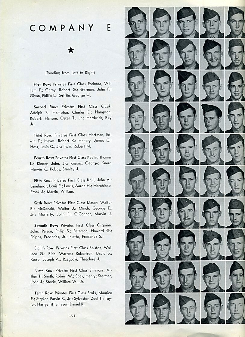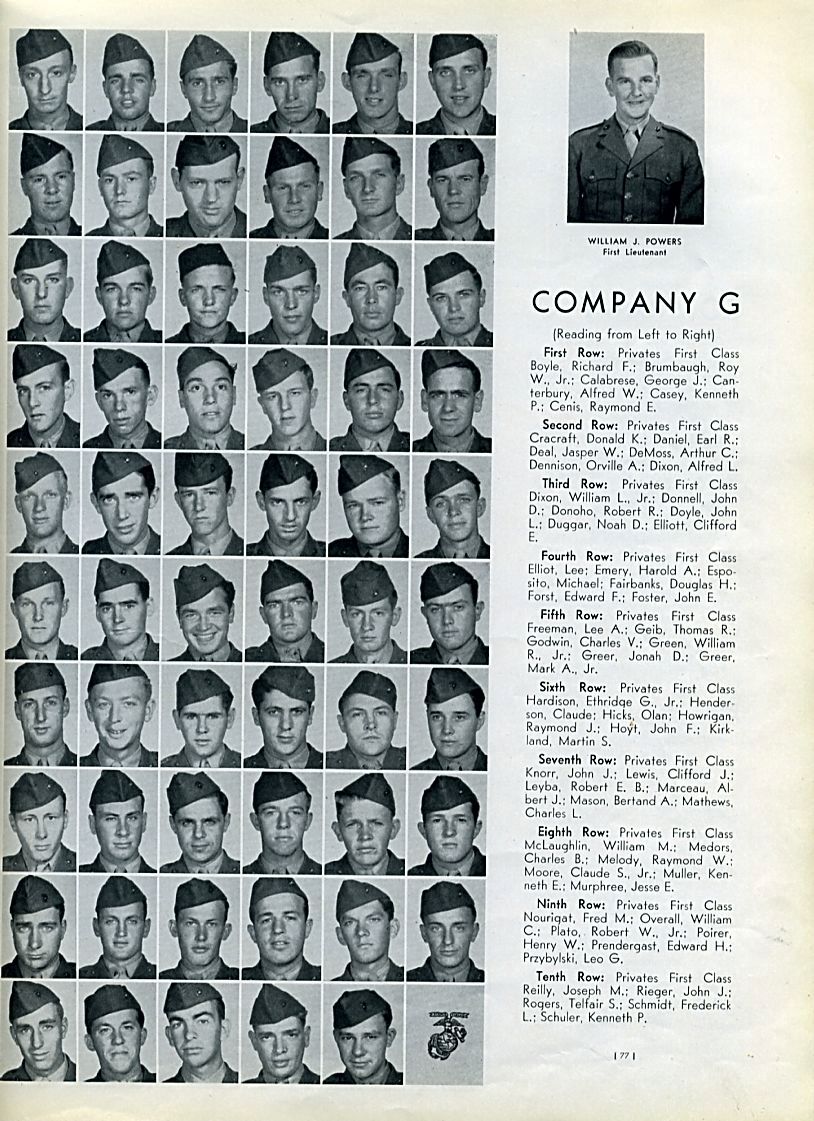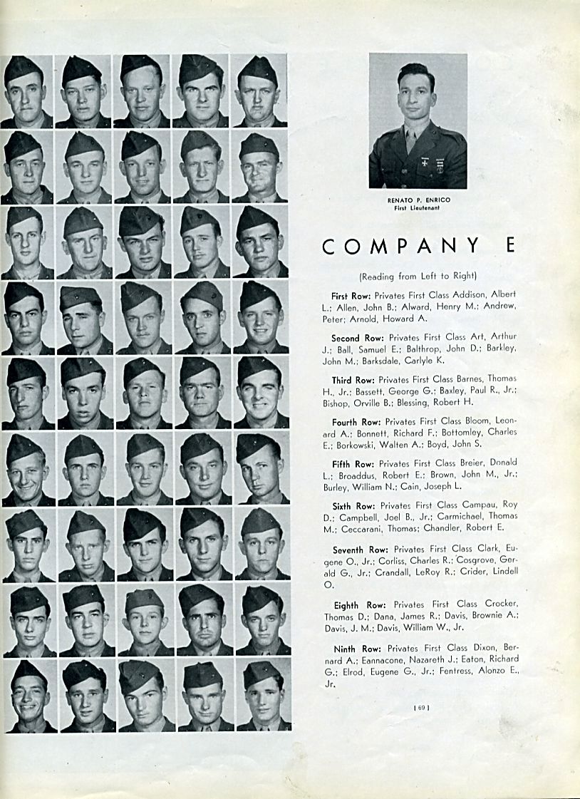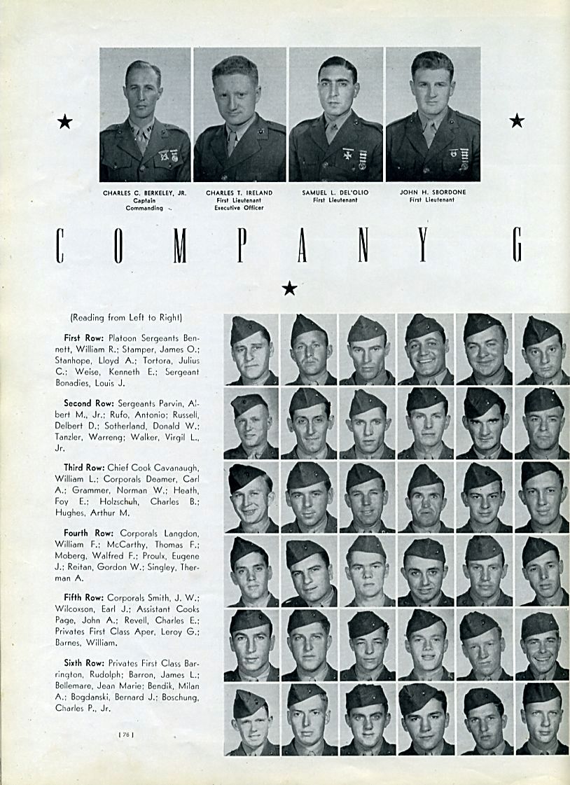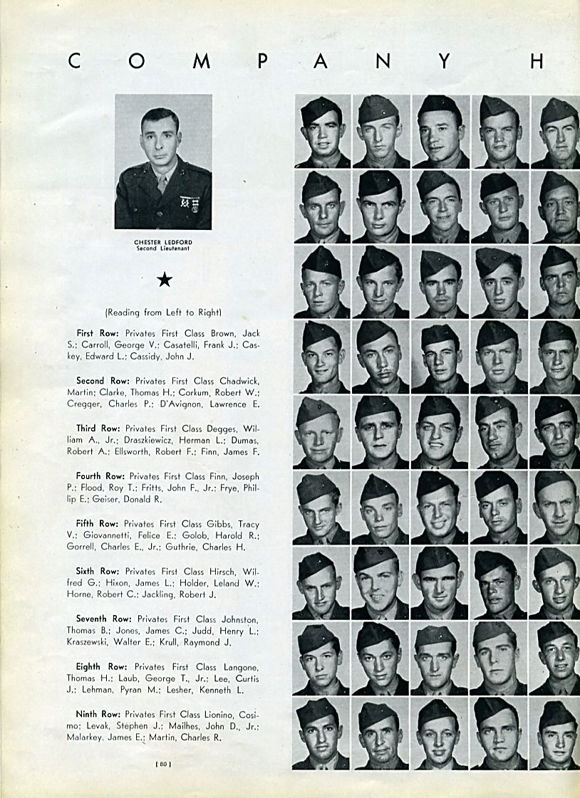 In 1943 when the 24th Regiment was formed the famous "Red Book" was issued. It was what we in the Navy call a "Cruise Book". This book contains a short history, various pictures some of the Regiment, and most importantly portraits of each man in the Regiment by Battalion and Company. Here presented are the Men of the 2nd Battalion.
