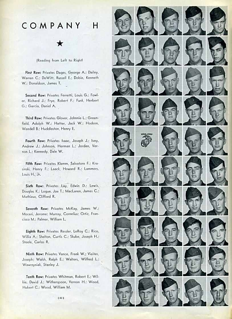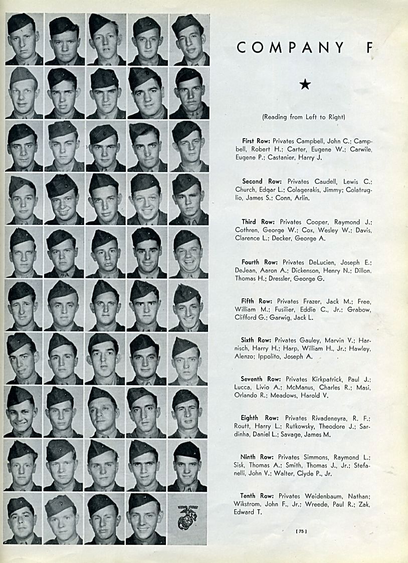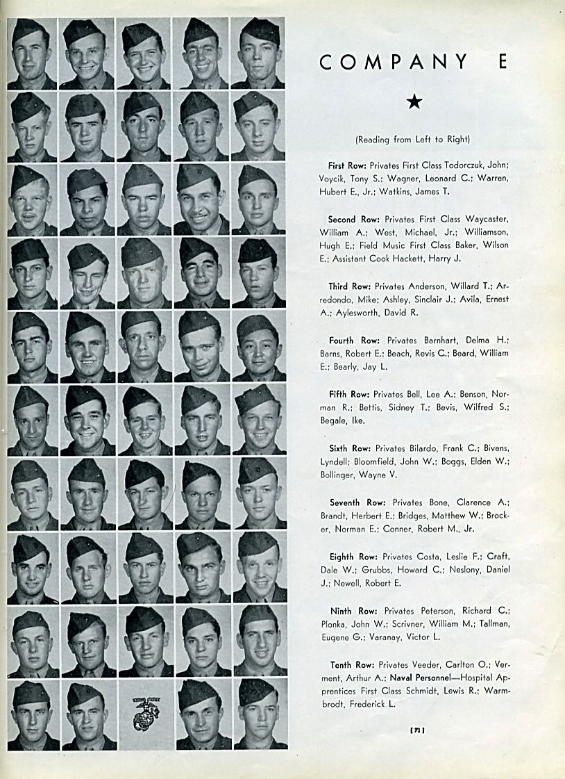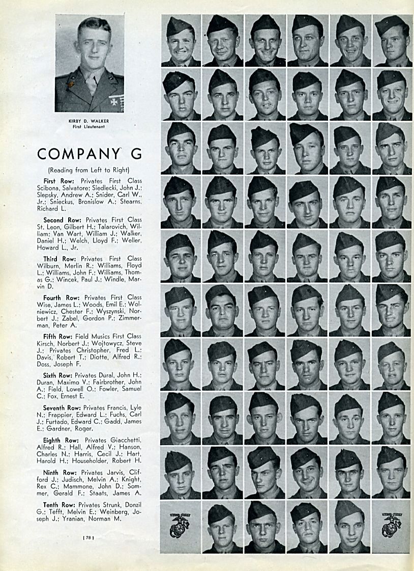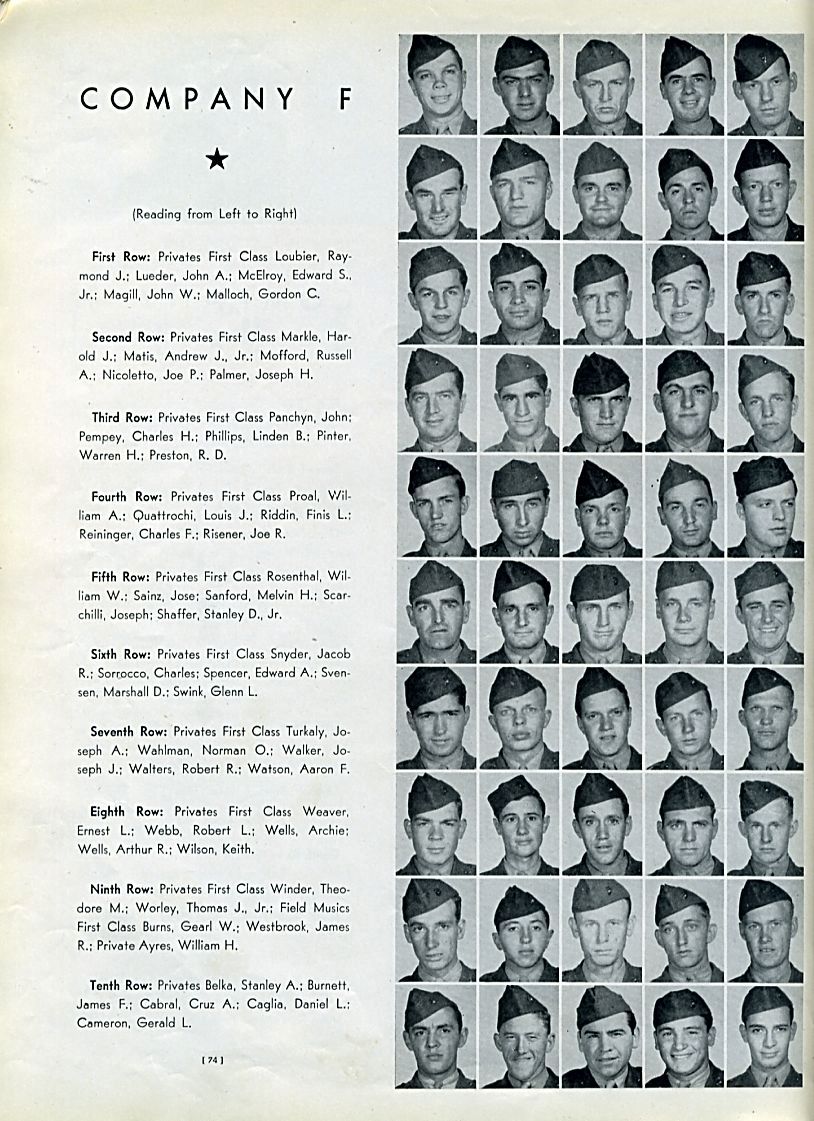 In 1943 when the 24th Regiment was formed the famous "Red Book" was issued. It was what we in the Navy call a "Cruise Book". This book contains a short history, various pictures some of the Regiment, and most importantly portraits of each man in the Regiment by Battalion and Company. Here presented are the Men of the 2nd Battalion.