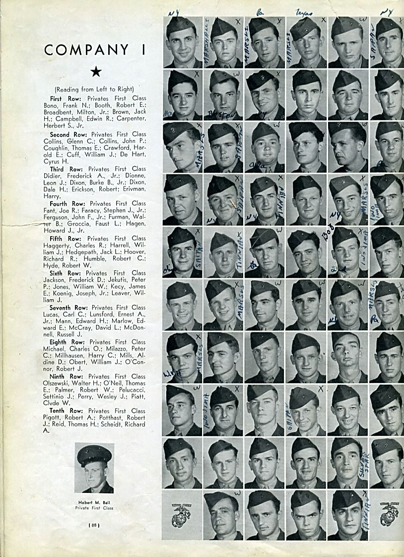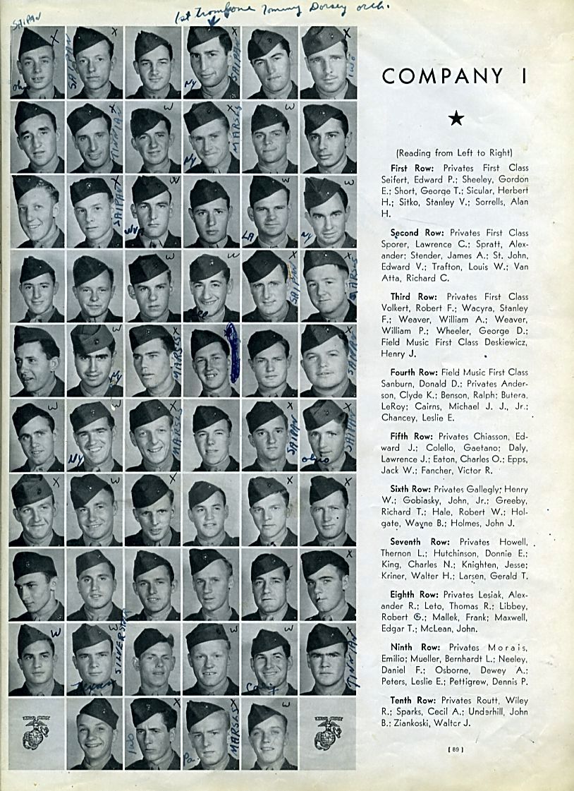 The pages below were marked by the original owner of this book with a "w" or a "k" for each man who became a casualty. The 80% casualty rate shows the high price the 24th Regiment paid in WWII. The men below are Company I of the 3rd Battalion.